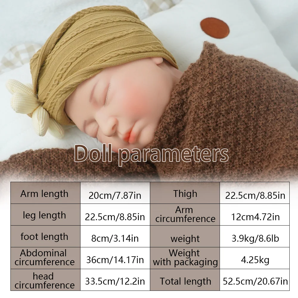 Size: 20.67 inches (approximately 52.5 centimeters), close to the size of a real newborn, suitable for holding or displaying.