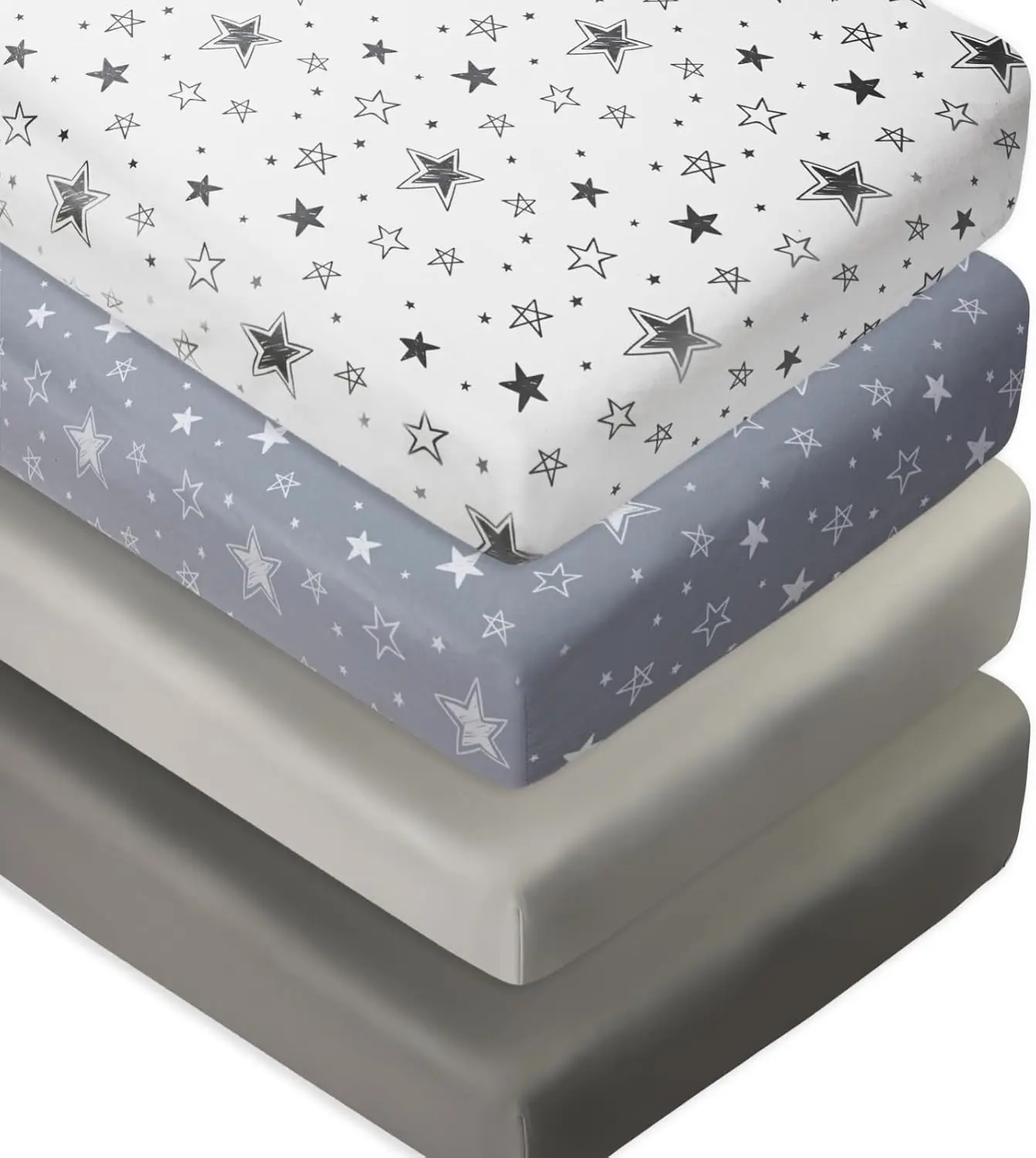 4 Pack Star Moon Crib Sheets Set, Neutral Baby Mattress Cover for Boys Girls, Breathable Fitted Crib Sheets