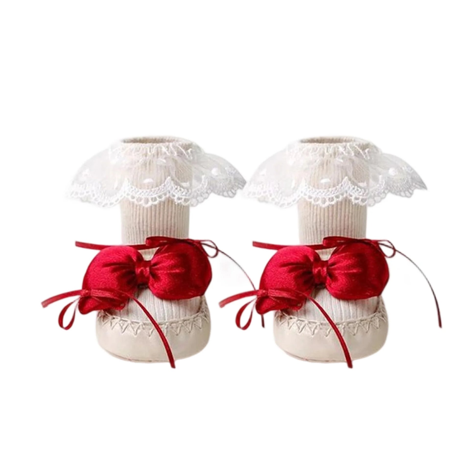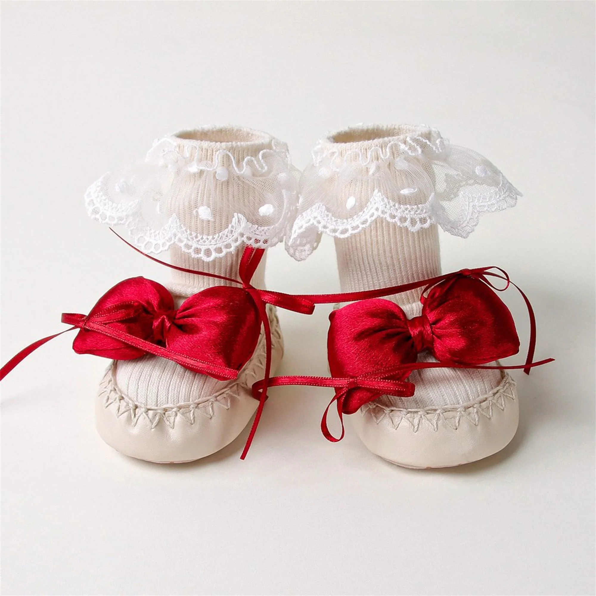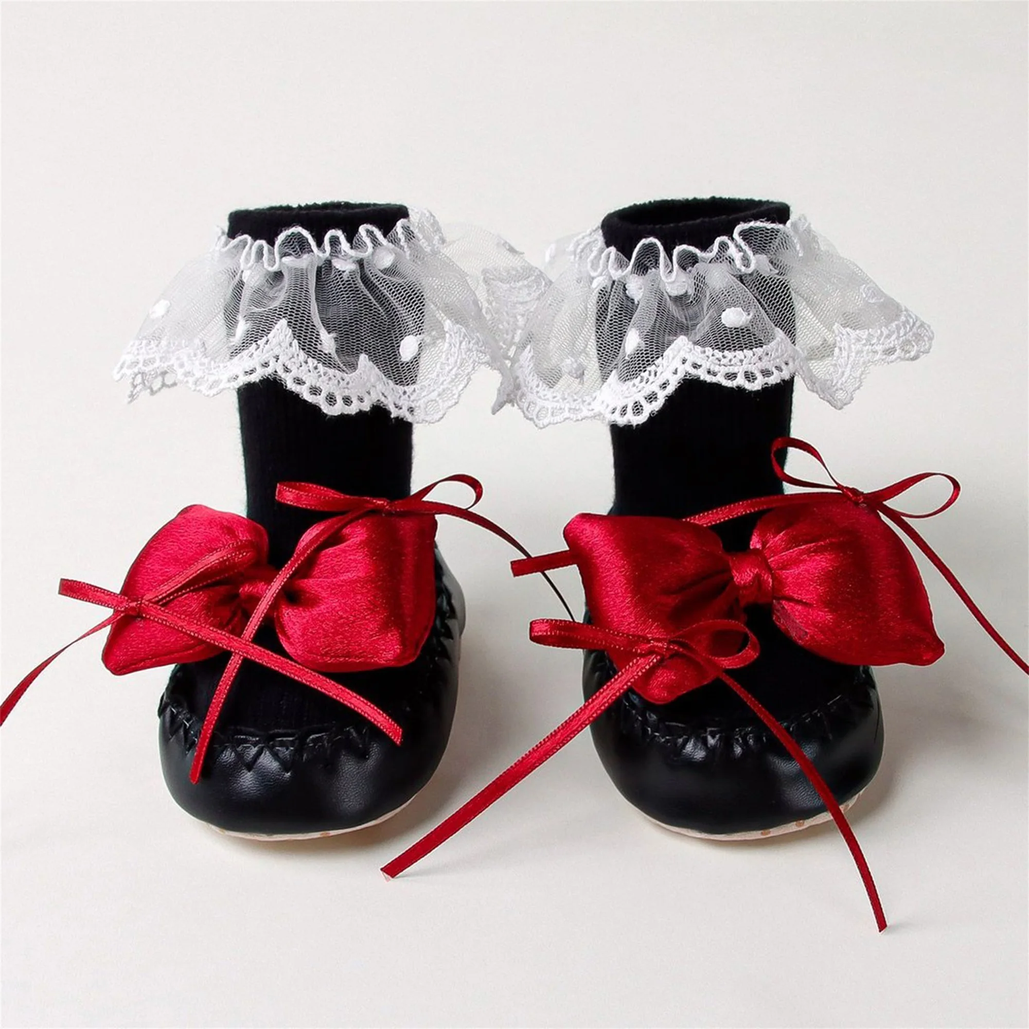 Baby Girl Sock Shoes Cute Soft Non-slip Lace Trim Flats with Bows Warm Walking Shoes for Newborn Infant Toddler