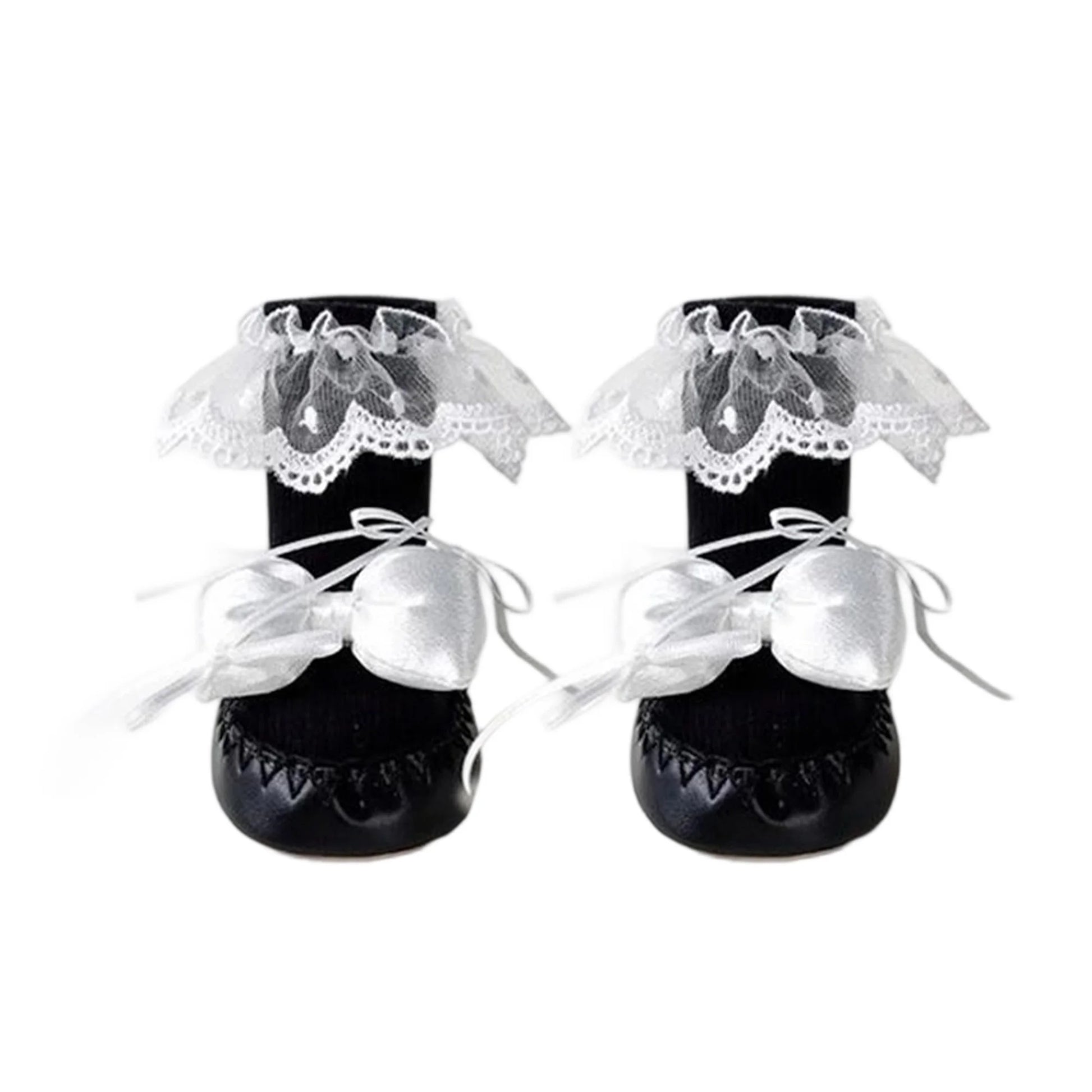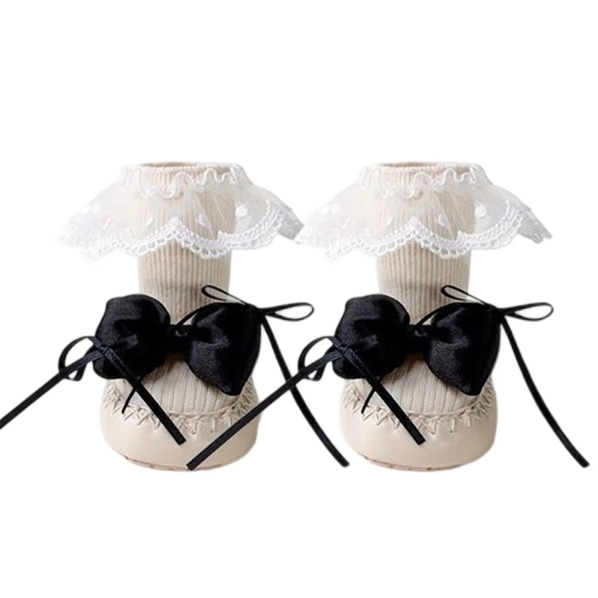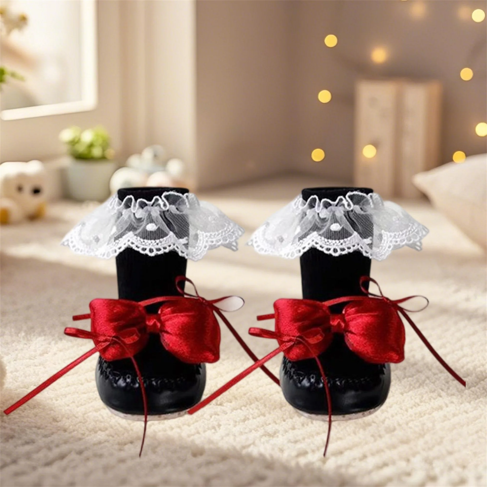 Baby Girl Sock Shoes Cute Soft Non-slip Lace Trim Flats with Bows Warm Walking Shoes for Newborn Infant Toddler