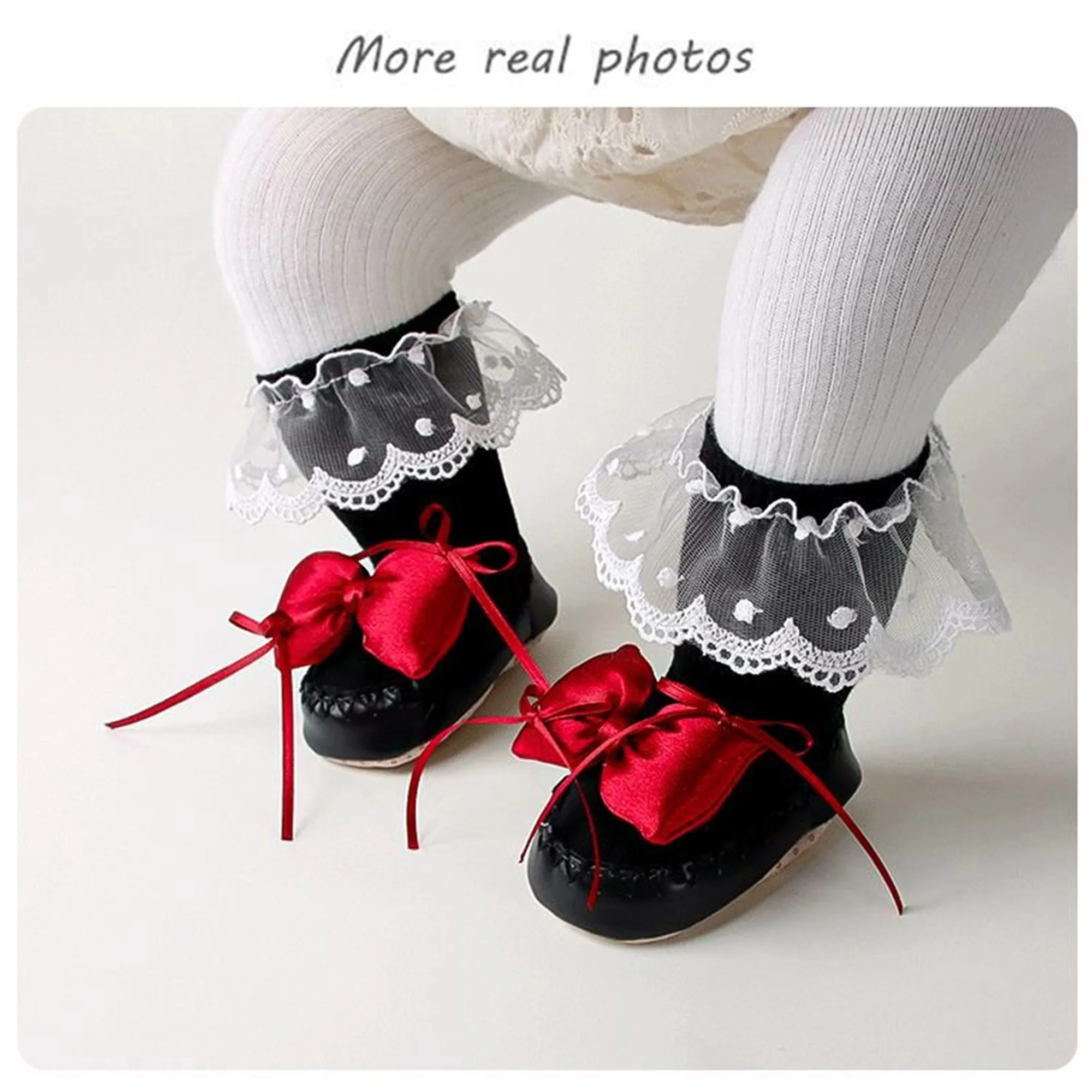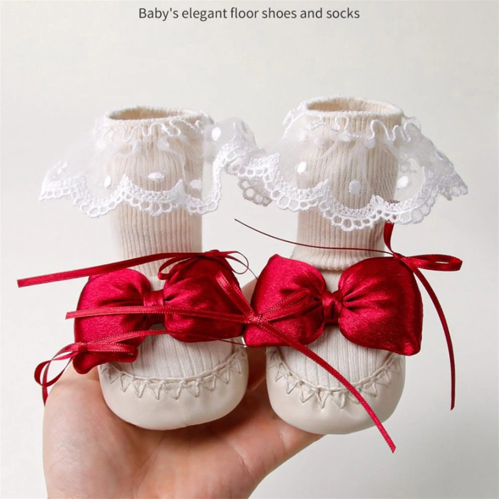 Sock shoes for baby girls with cute bows and lace trims, bright colors, practical and fashionable; You can give it to children as birthdays, baby showers, Christmas presents