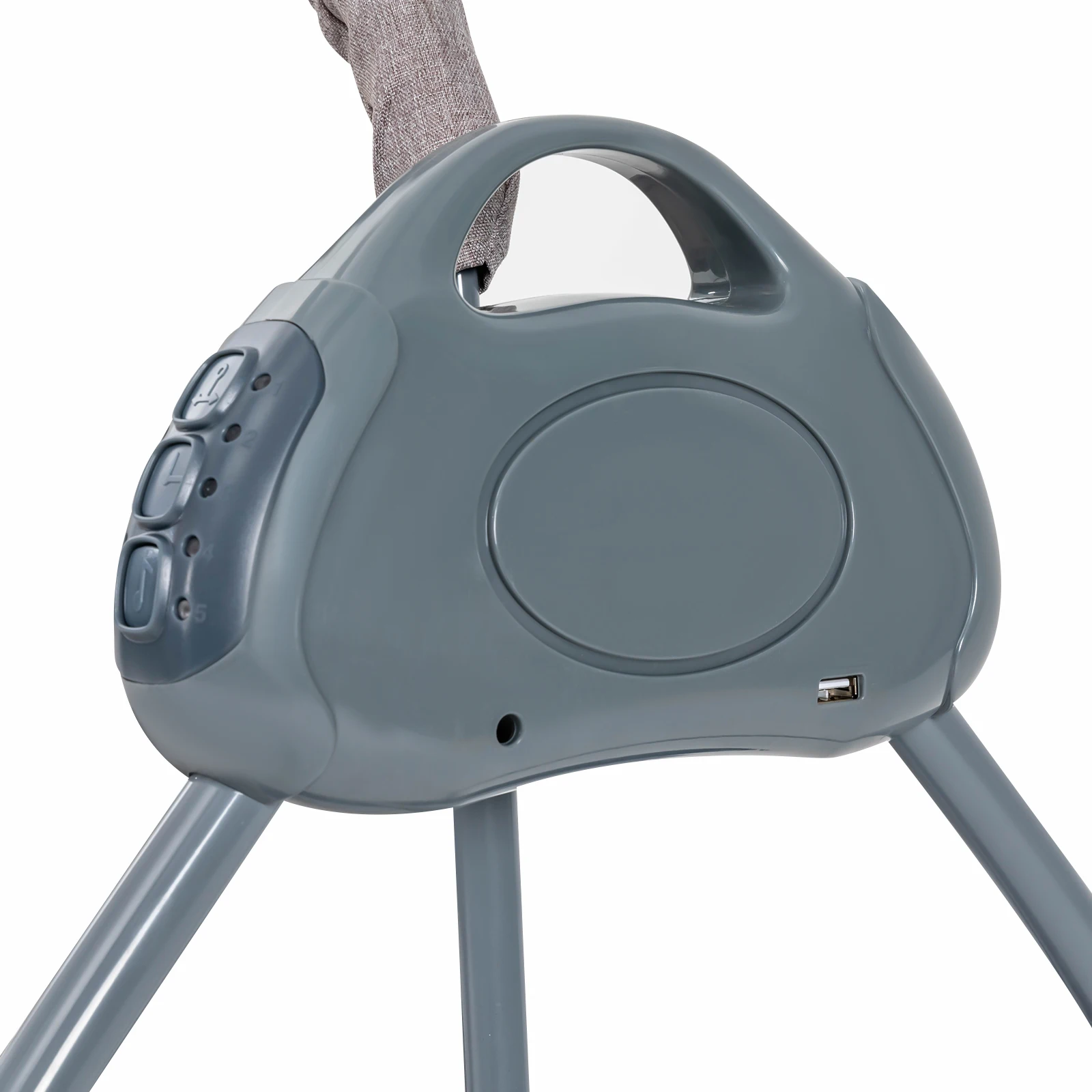 USB Power Cord: This baby cradle swing uses a USB power cord so that you can not only connect to a 5V power supply at home but also use a power bank for charging outside.