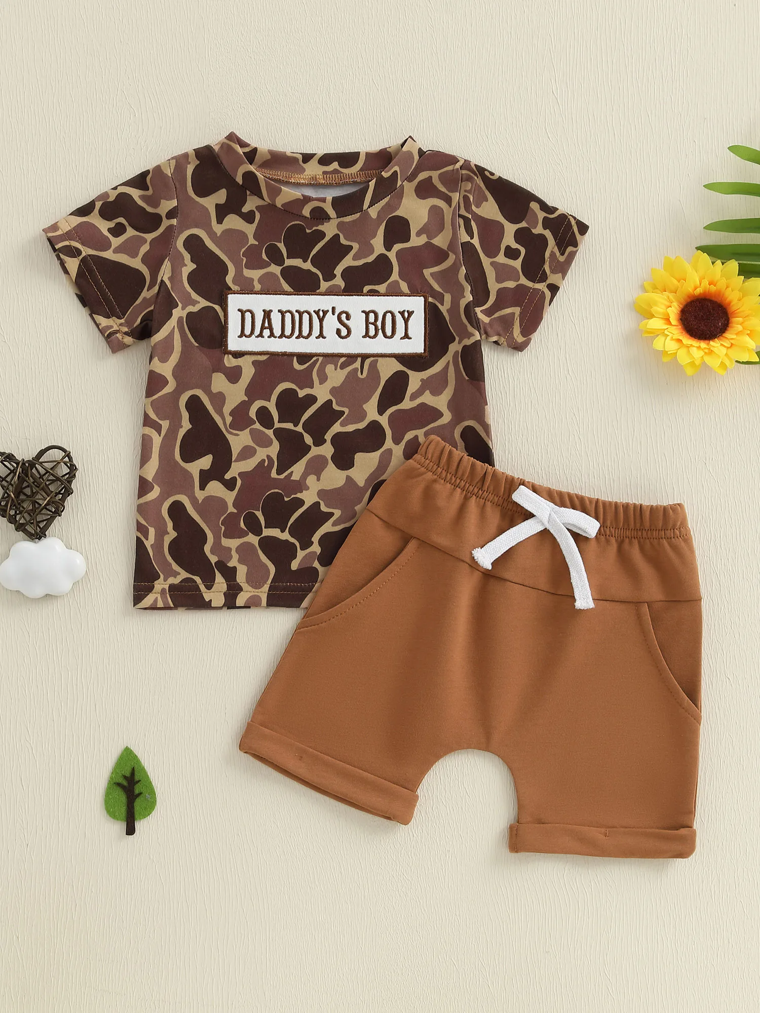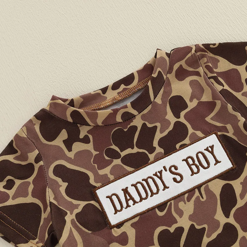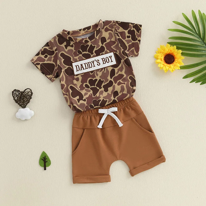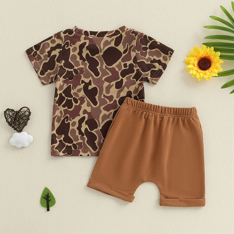 Boys Summer Shorts Sets Short Sleeve O Neck Camouflage Tops and Drawstring Shorts Sets
