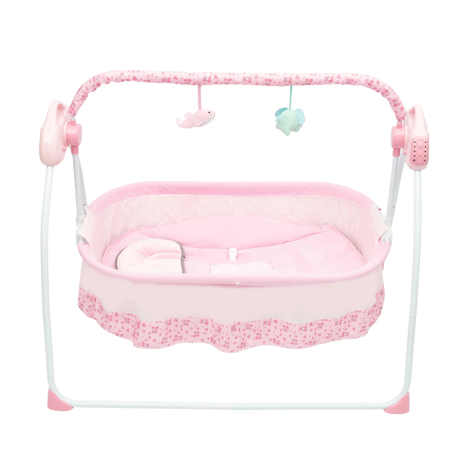 Electric Baby Crib Cradle, 0-18 Monthsinfant Bed, 25kg/55lbs Capacity, Foldable Baby Cradle Swing for Home/Travel(pink)