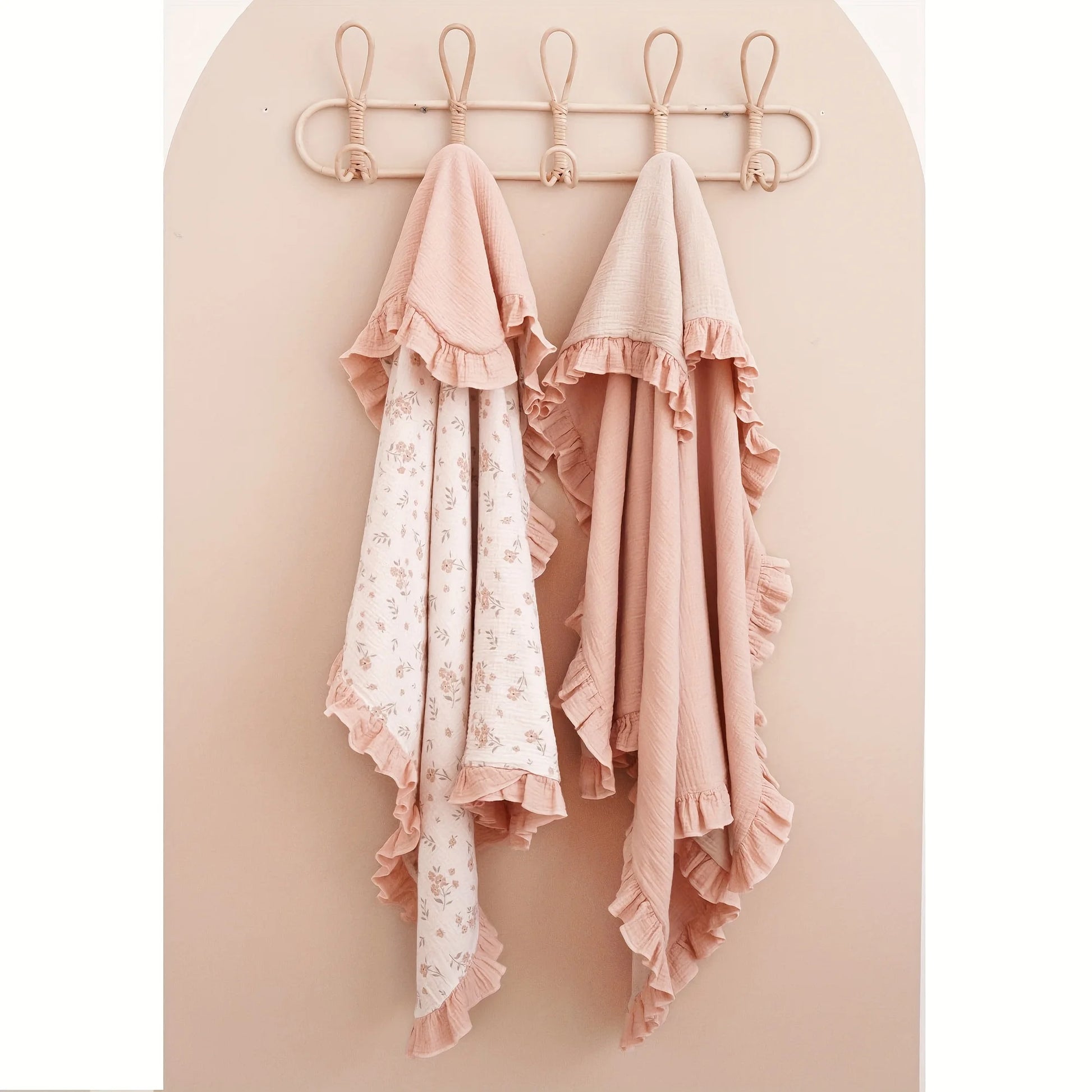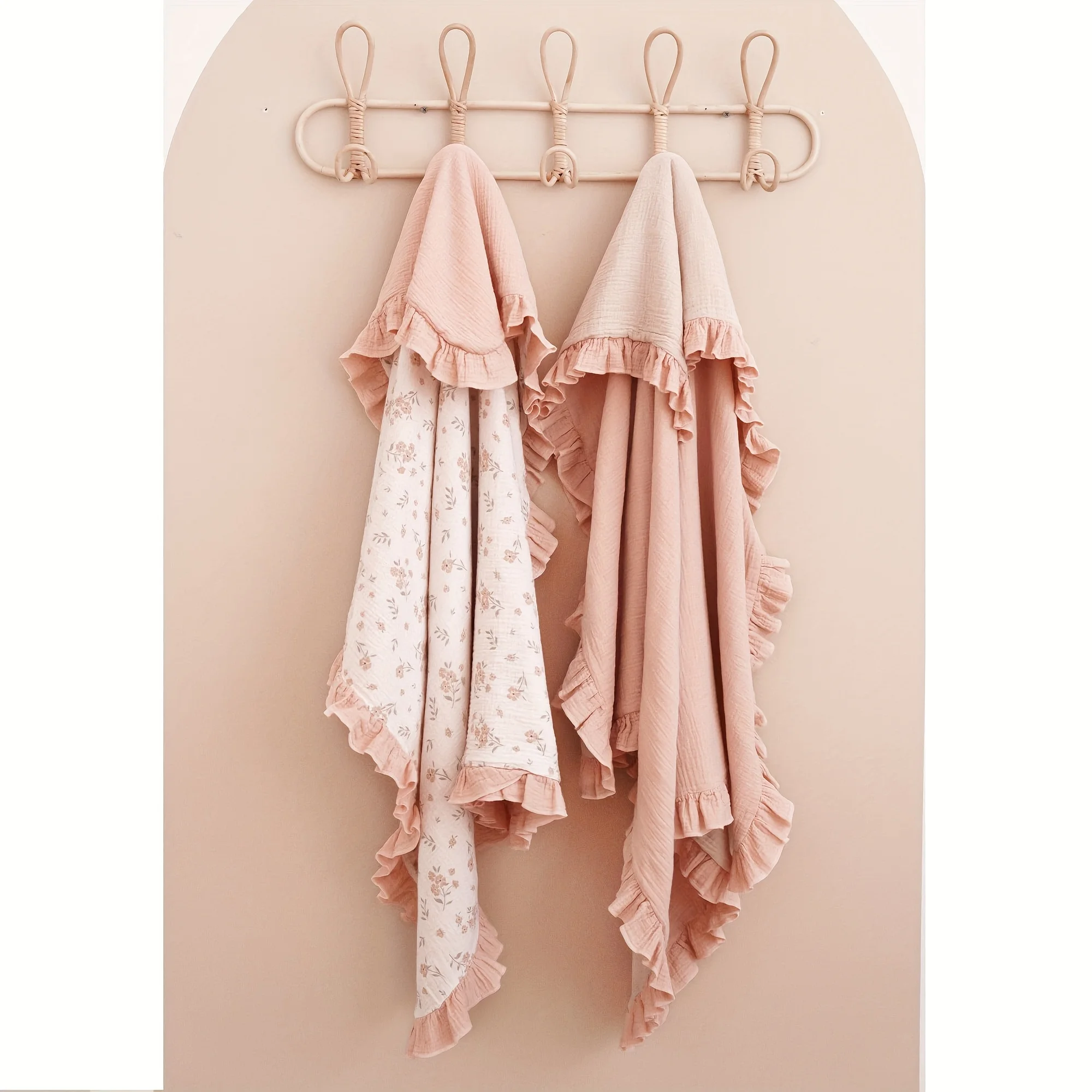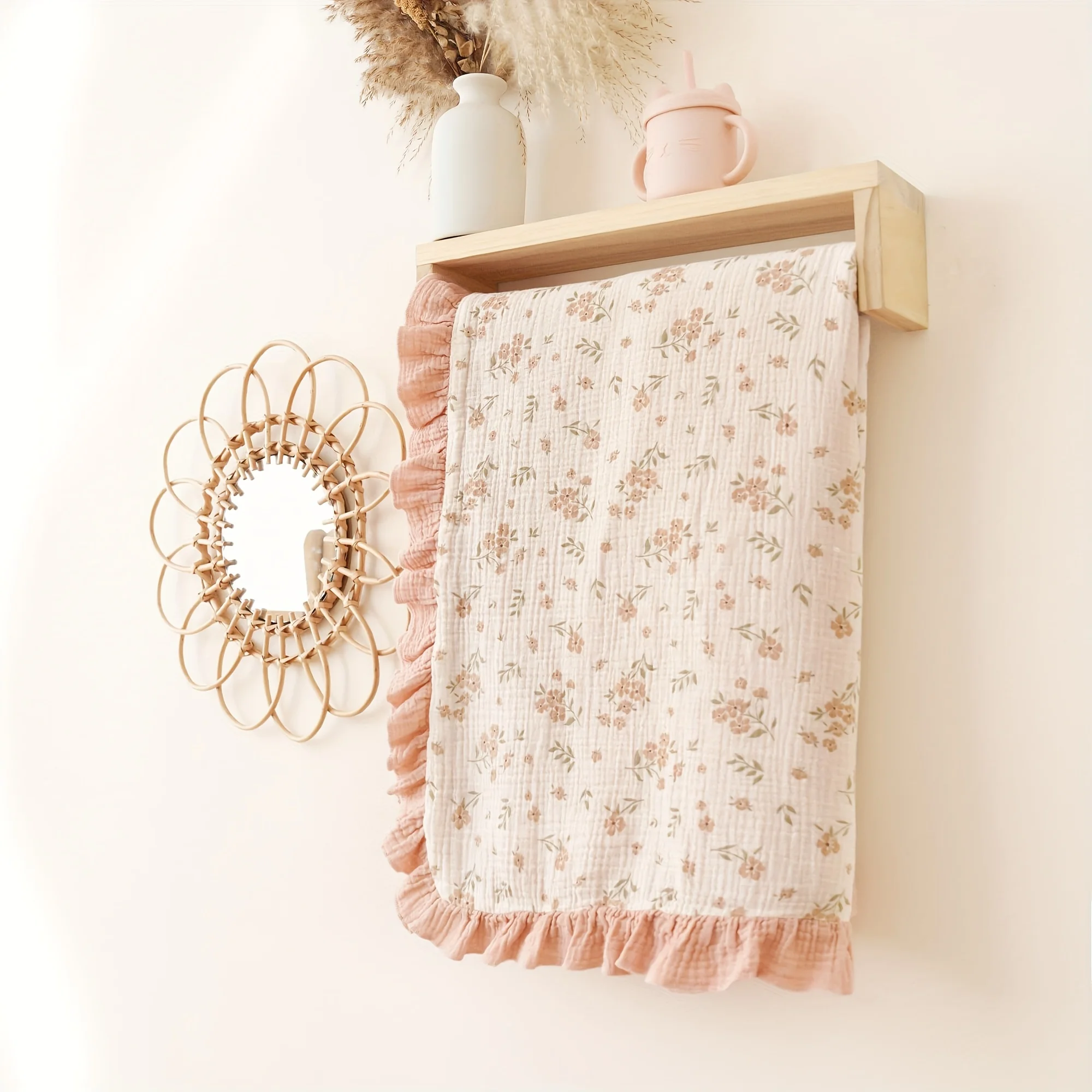 Flounce-Trim Muslin Baby Blanket, 40" x 36" Ultra-Soft Breathable Cotton Crib Sheet for Boys & Girls, Lightweight Nursery Cover