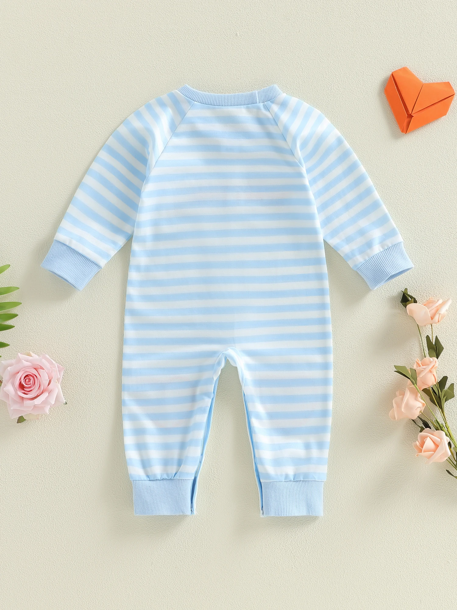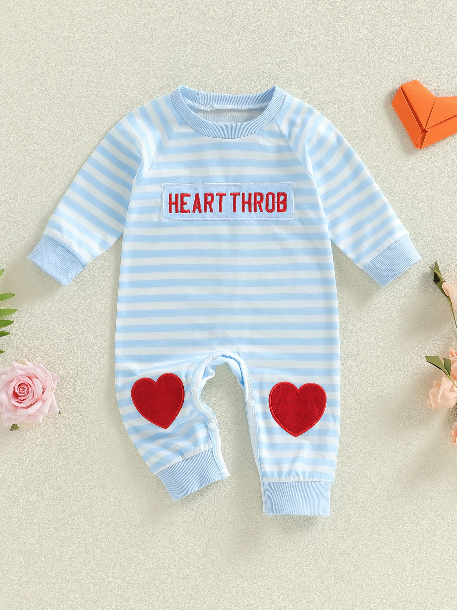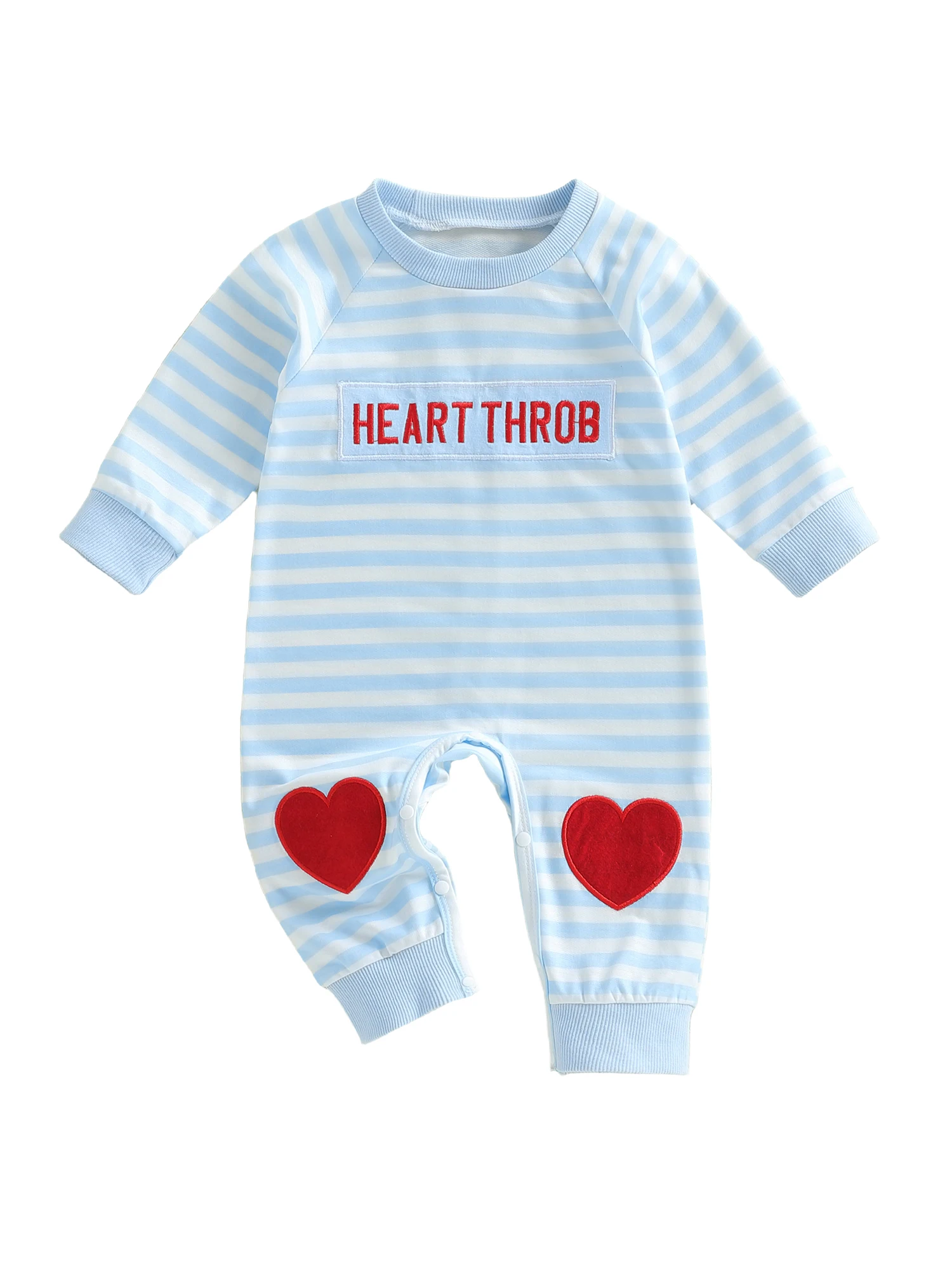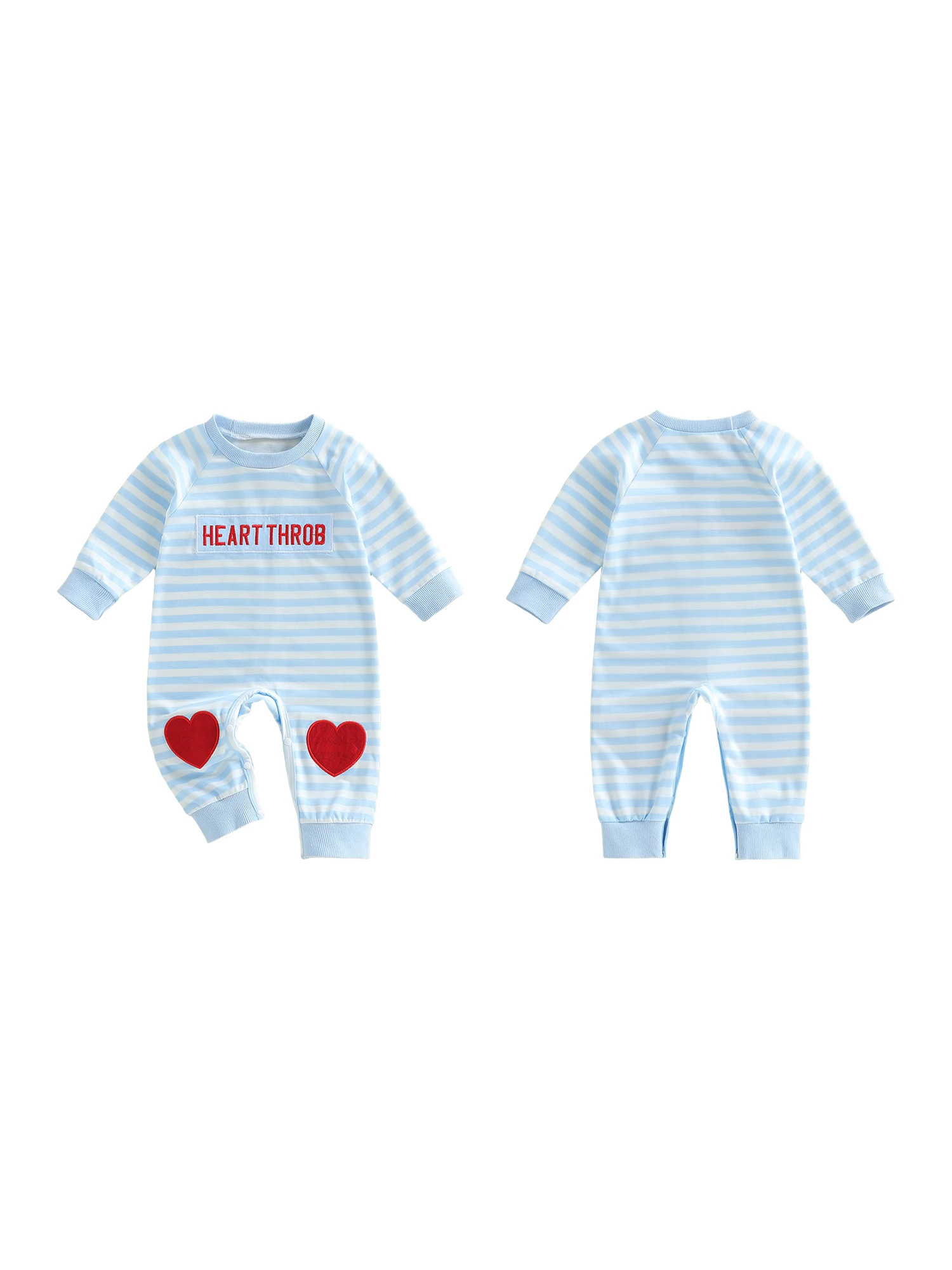 Baby Jumpsuit, Long Sleeve Crew Neck Plaid/Stripes Embroidery Fall Romper Valentines Day Clothes for Boys Girls