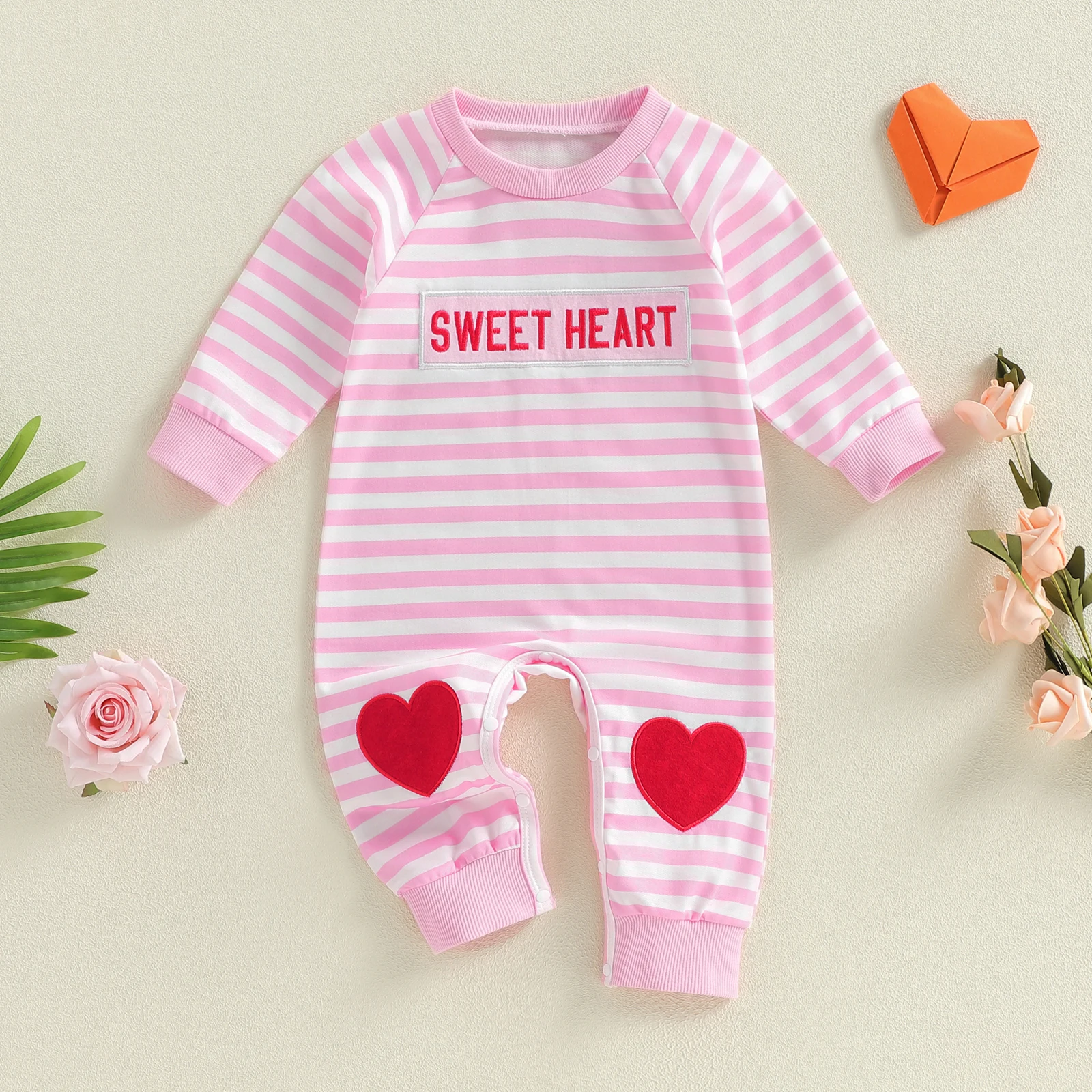 Infant Romper Stylish Long Sleeve Crew Neck Plaid Stripes Embroidered Jumpsuit for Baby Boys and Girls Cute Valentine s Day