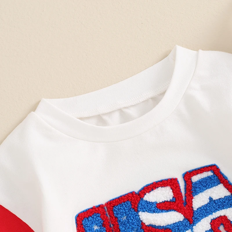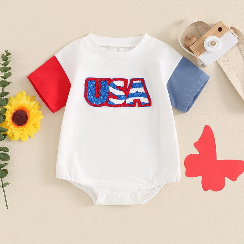 Baby Girls Boys Romper, Short Sleeve Crew Neck Embroidery Letters Summer Bodysuit Clothes for Independence Day