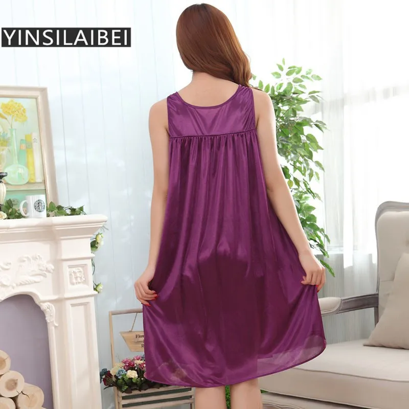 YINSILAIBEI Large Sexy Night Dress Ice Silk Satin Sleepwear Female Nightgown Women Sleeping Dresses Plus Size Night Shirts #22