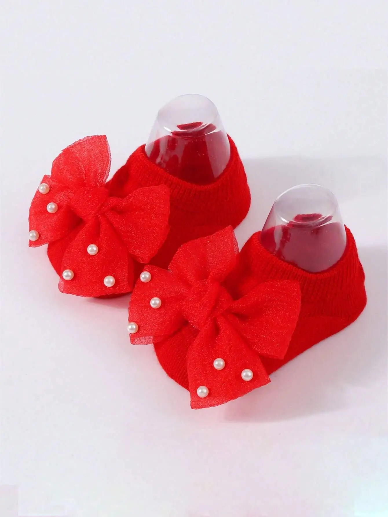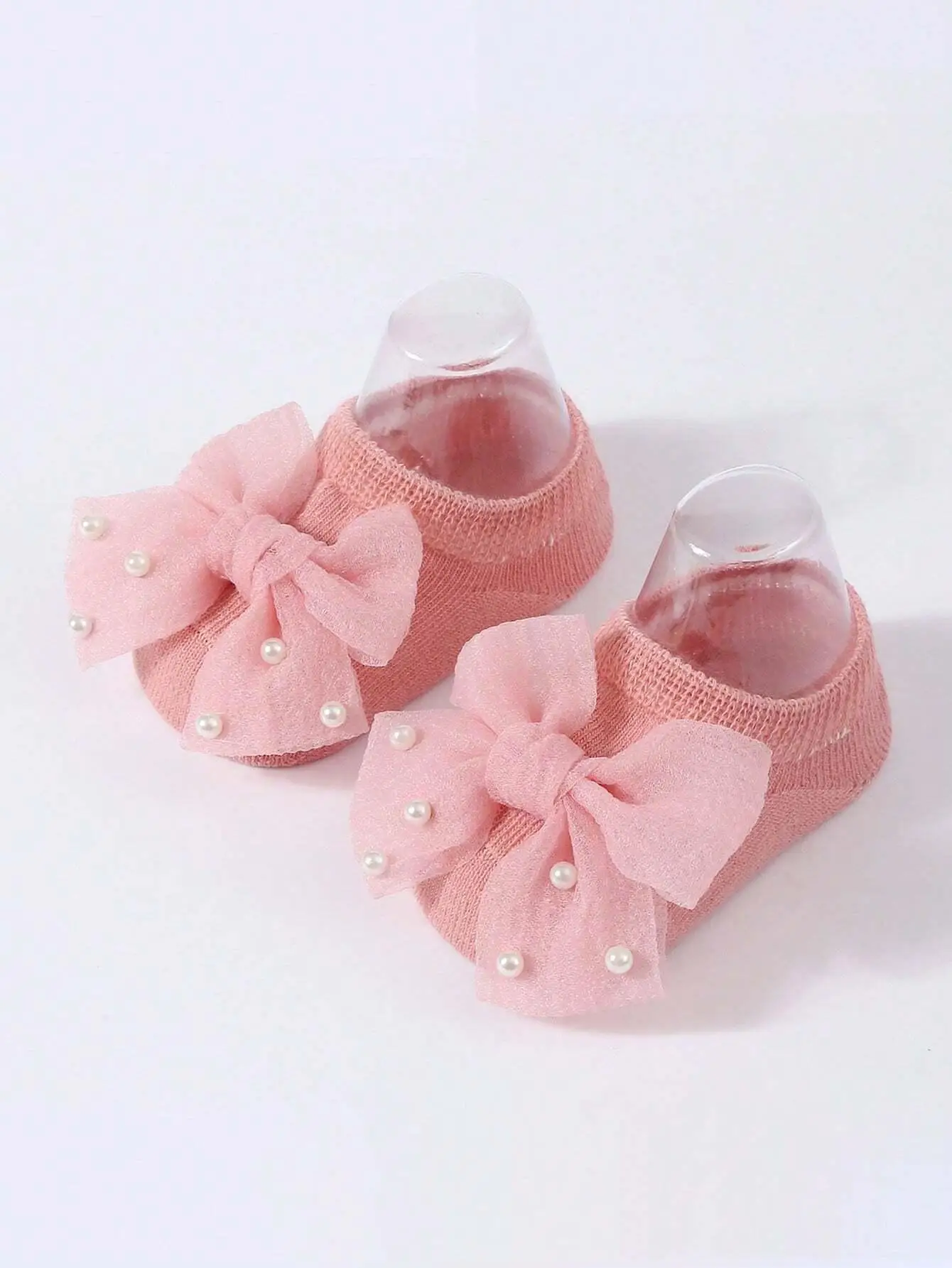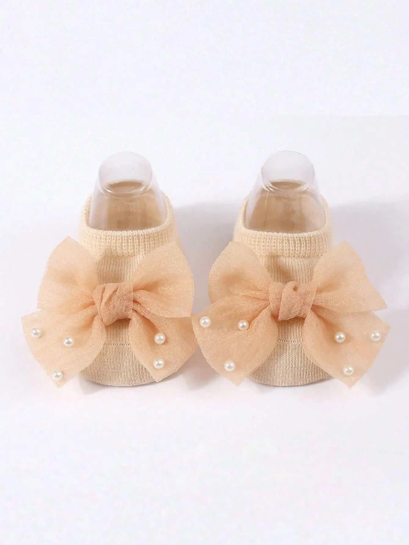 Soft Baby ulle Bow with Pearl Embellishments Socks Ideal for Birthday & Photoshoot baby socks