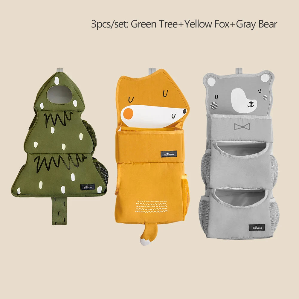 Sunveno Cartoon Baby Crib Hanging Storage Bag, Multi-functional Organizer for Baby Supplies Baby Room Decor