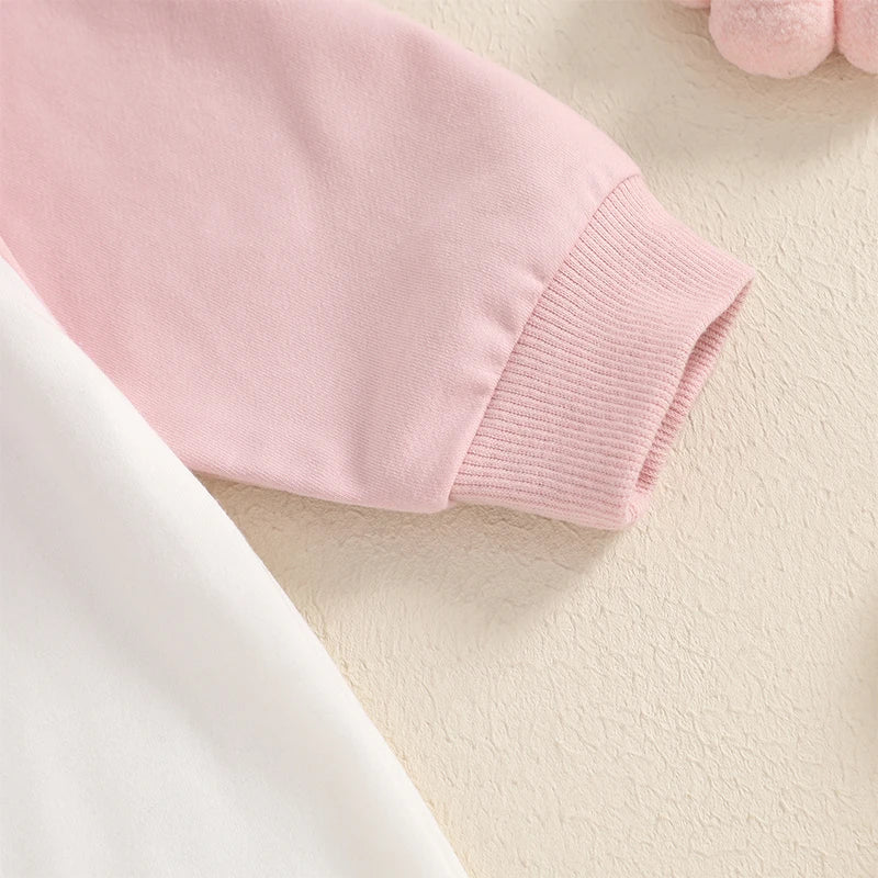 Baby Girl Easter Casual Jumpsuit Long Sleeve Round Neck Letter Bunny Embroidery Romper