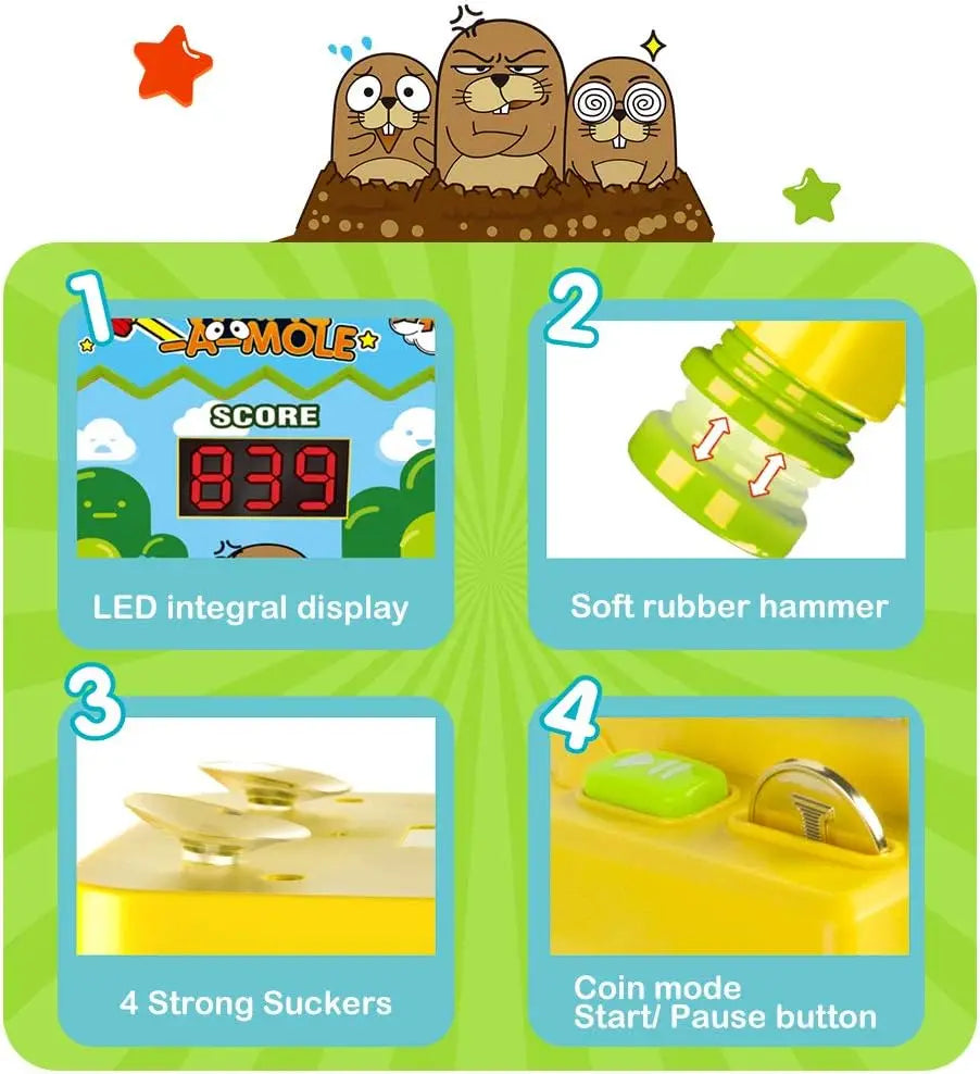 ✨【NO SCREEN TIME FAMILY GAME】Get rid of TV, mobile phone, computer; Both parents and kids can play a family game of Whack-a-Mole to increase parent-child interactivity and rekindle family night. Don't blink, hold your hammer, focus on the Mini Electronic Arcade Game, hit the moles, which are lighted up, to add up the score. The more this is done, the higher the final score will be
